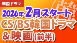 2026年2月前半のBS・CS放送の気になる韓国ドラマ&バラエティー番組の第1回目の放送や映画作品を集めてみました。気になる作品があったら、ぜひチェックしてみてね。