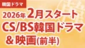 今月の韓国・中国BS/CS番組2026年 2月スタート CS/BS韓国ドラマ&映画(前半)