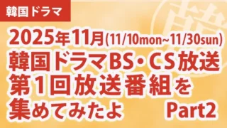 2025年12月のBS・CS放送の気になる韓国ドラマ&バラエティー番組の第1回目の放送や映画作品を集めてみました。気になる作品があったら、ぜひチェックしてみてね。